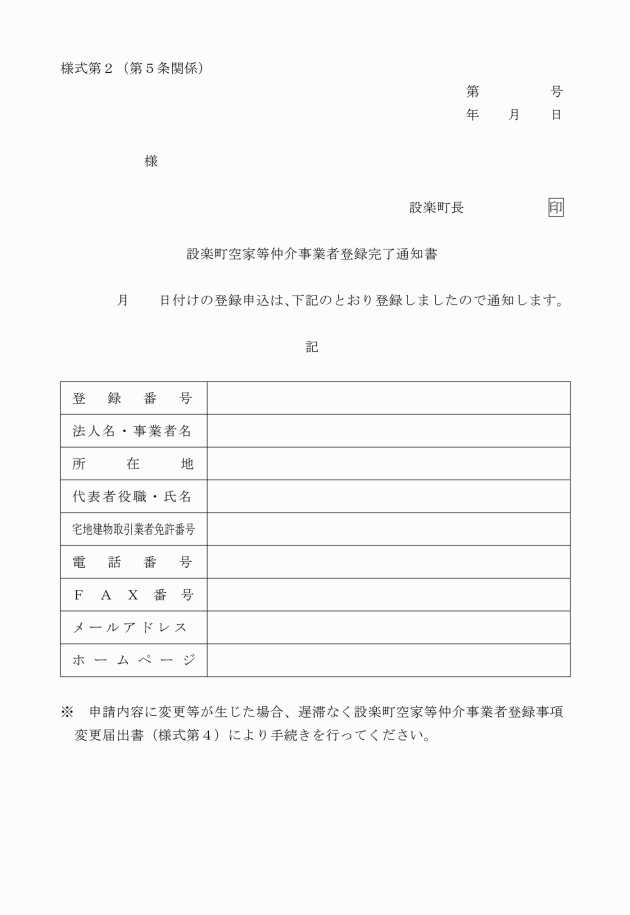第9条 報奨金の交付を受けようとする者は、基準日の翌日から起算し30日以内又は基準日の属する会計年度の3月31日のいずれか早い日に設楽町空家等仲介報奨金申請書兼請求書(様式第6)に次の書類を添えて町長に提出するものとする。