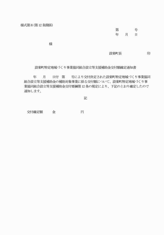 第5条 補助金の交付を受けようとする者(以下「申請者」という。)は、設楽町特定地域づくり事業協同組合設立等支援補助金交付申請書(様式第1。以下「申請書」という。)に町長が別に定める書類を添えて、町長に提出しなければならない。